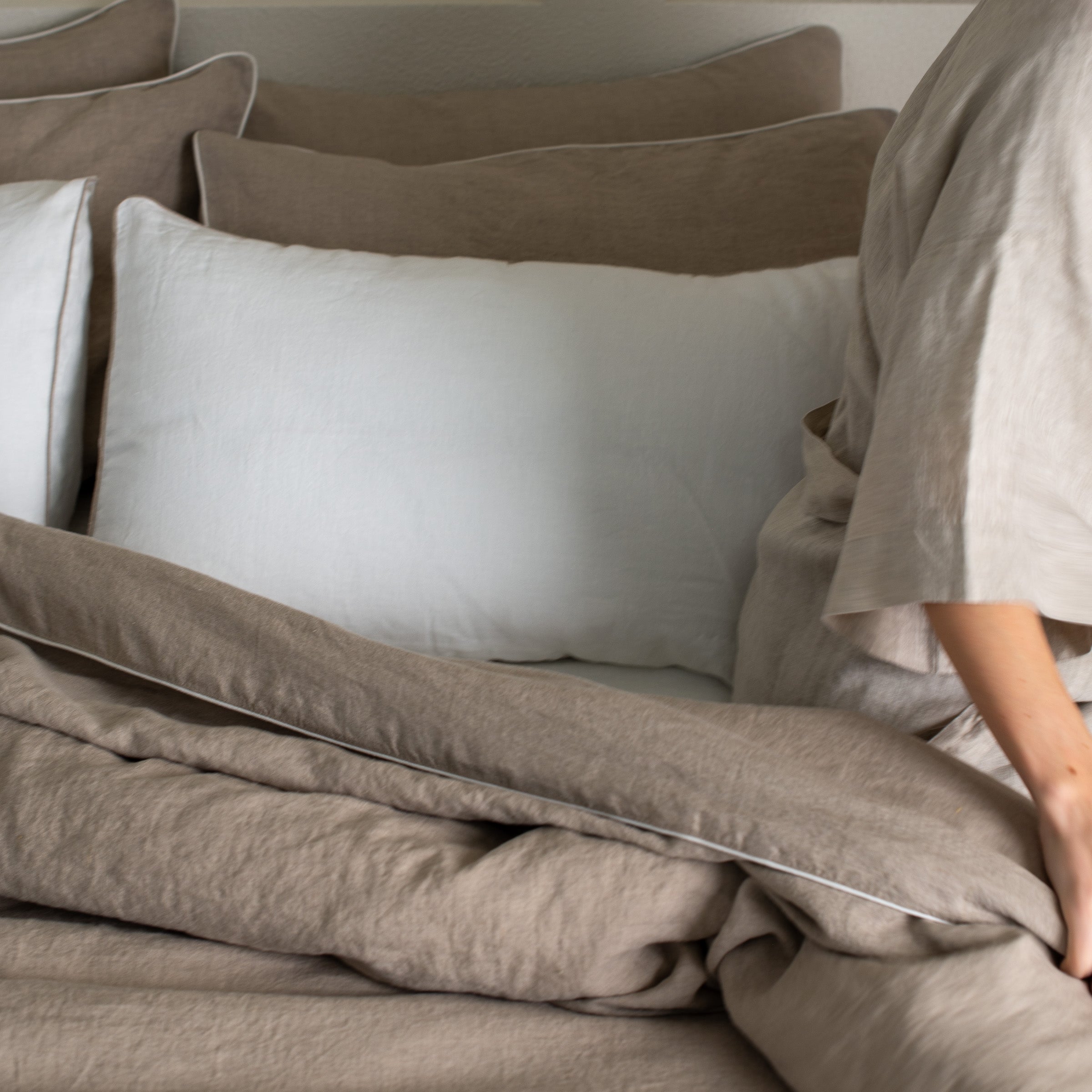 Bettwäsche-Set aus Leinen, Melange mit weißer Paspel
