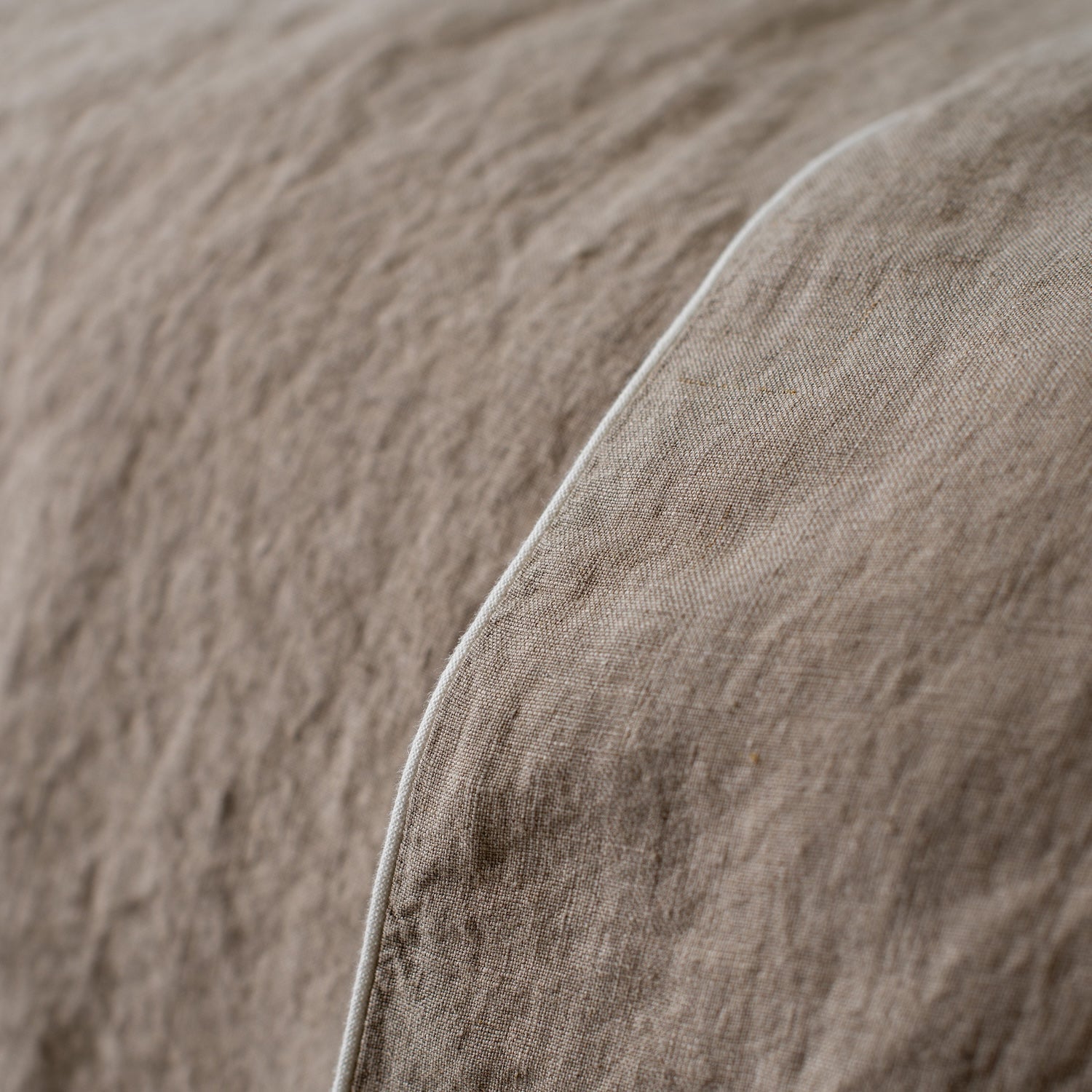 Unsere klassische Leinenbettwäsche, die Sie lieben – nur noch raffinierter und eleganter. Die Paspelierung setzt eine klare, plastische Linie, die den gesamten Look verändert, ohne der schlichten Ästhetik Abbruch zu tun. Ein kleines Detail mit großem Effekt: Es verleiht dem Set eine edle Ausstrahlung wie im Luxushotel, während die natürliche Weichheit und Lässigkeit von reinem Leinen erhalten bleiben. Genau das Upgrade, das Ihre Schlafroutine verdient.