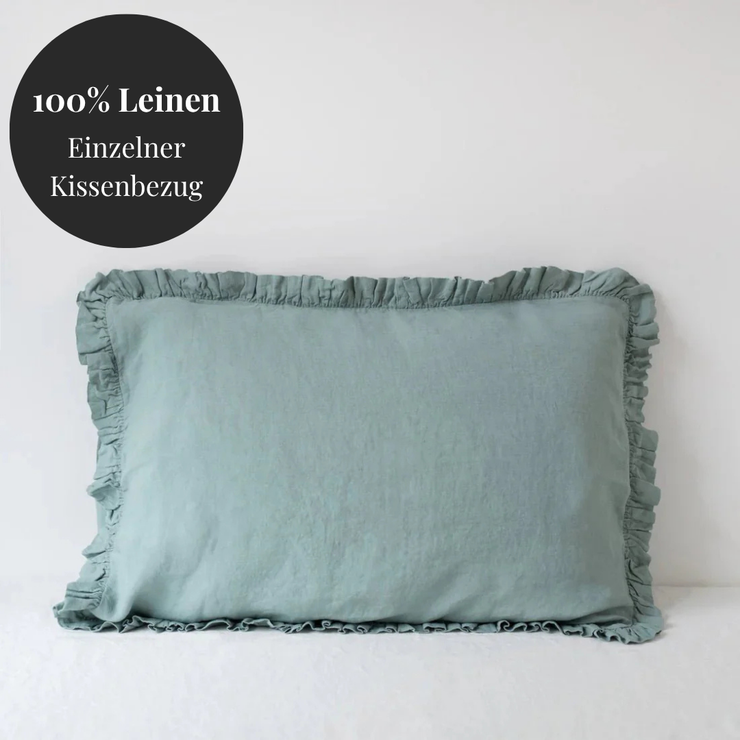 Leinen-Kopfkissenbezug mit Rüschen, Green Milieu