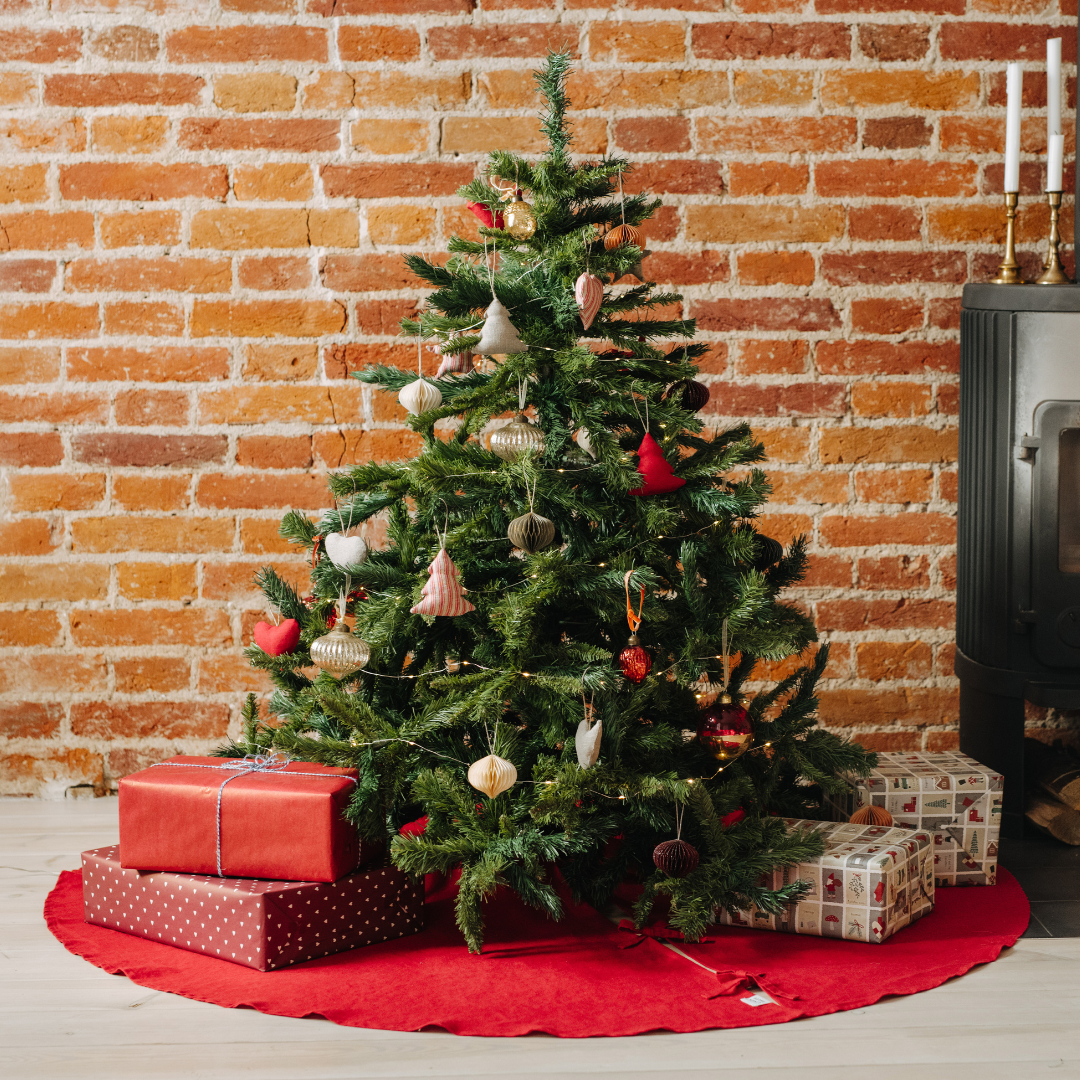 Schmücken Sie Ihren Weihnachtsbaum mit einer festlichen, handgefertigten Leinen-Christbaumdecke. Die Weihnachtsbaumdecke lässt den Baum elegant aussehen und schafft einen geschmackvollen Ort, an dem Sie alle Weihnachtsgeschenke unterbringen können. Verleihen Sie Ihrer Einrichtung mit dieser traditionellen Dekoration einen gemütlichen, rustikalen Touch und genießen Sie herrliche Abende am Weihnachtsbaum. Erhältlich in verschiedenen wunderschönen Farben und Motiven.
