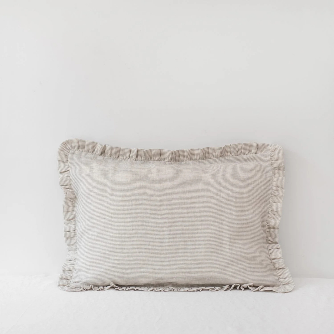 Leinen-Kopfkissenbezug mit Rüschen, Natural Stripes