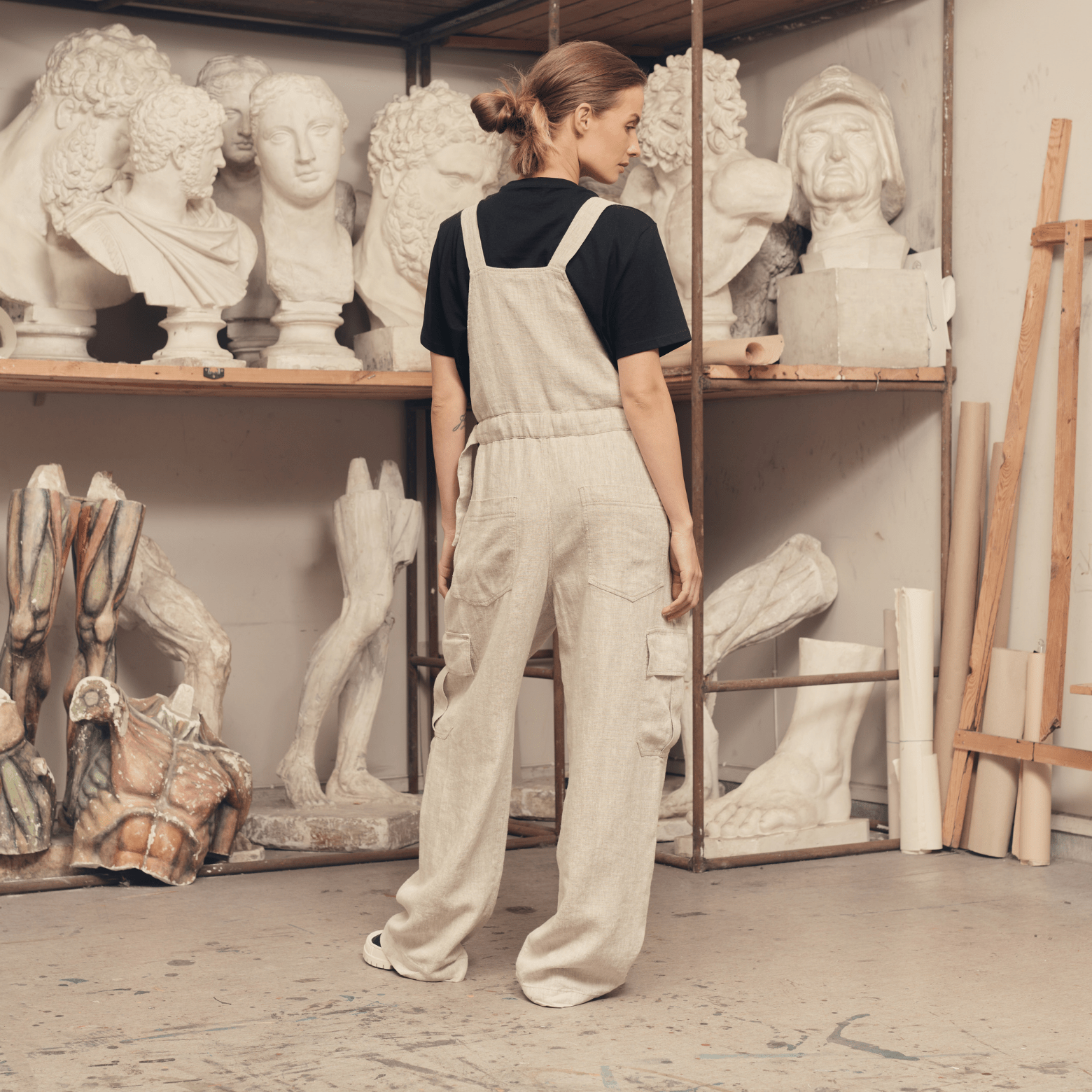 Unser Elm-Overall, entworfen mit einer mutigen, stilvollen und künstlerischen Persönlichkeit im Blick, ist ein zeitloses Unisex-Stück, das nie aus der Mode kommt. Die verstellbare Taille, die anpassbaren Träger und die zahlreichen Taschen sorgen für unglaublichen Komfort. Robustes Leinen und der mo-derne Schnitt verwandeln ihn von einem lässigen Arbeitsanzug zu einem stilvollen Hingucker.