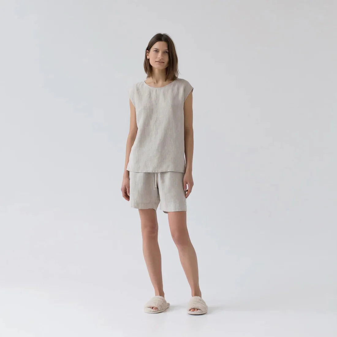 Perfekt für warme Nächte. Der Verbena-Pyjama ist aus weichem und atmungsaktivem Leinen gefertigt, so dass Sie ihn kaum auf Ihrer Haut spüren werden. Eine entspannte Passform für einen entspannten Körper. Mit einer gleichfarbigen Verpackungstasche.