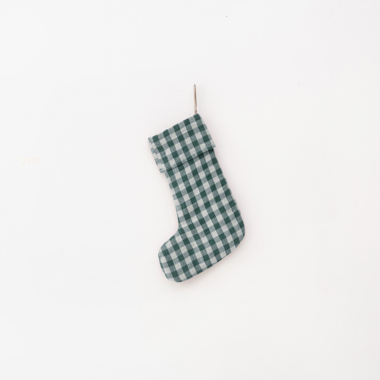 Leinen-Weihnachtsstrumpf, Forest Green Gingham