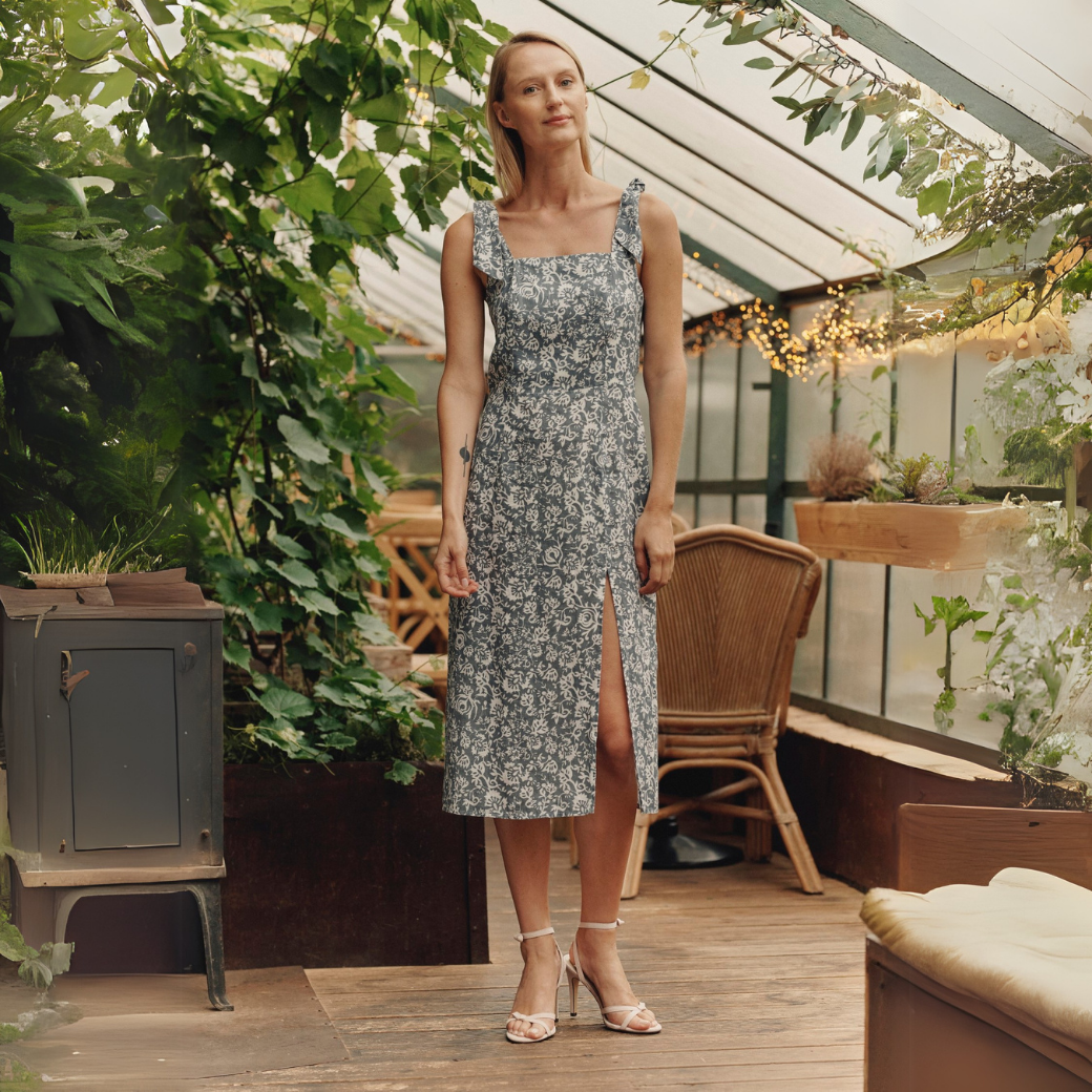 Das Leinenkleid Rumba strahlt zeitlose Eleganz aus und betont Ihre Figur mit seinen verstellbaren Schulterträgern zum Binden und dem hohen Schlitz auf der Vorderseite. Dieses Kleid kombiniert mühelos Anmut und Verlockung und ist perfekt für einen heißen Sommertag oder eine Abendveranstaltung. Tragen Sie es mit Absatzschuhen für einen raffinierten Look oder mit Sandalen für einen Hauch von entspannter Raffinesse.