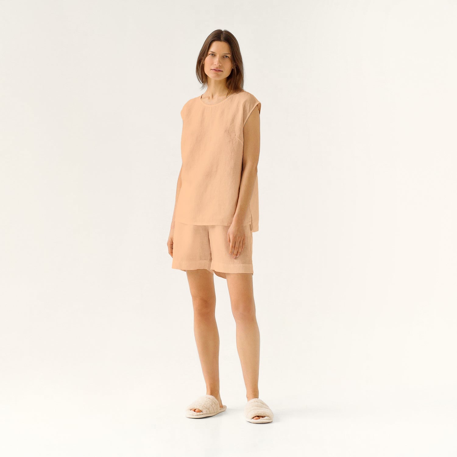Perfekt für warme Nächte. Der Verbena-Pyjama ist aus weichem und atmungsaktivem Leinen gefertigt, so dass Sie ihn kaum auf Ihrer Haut spüren werden. Eine entspannte Passform für einen entspannten Körper.